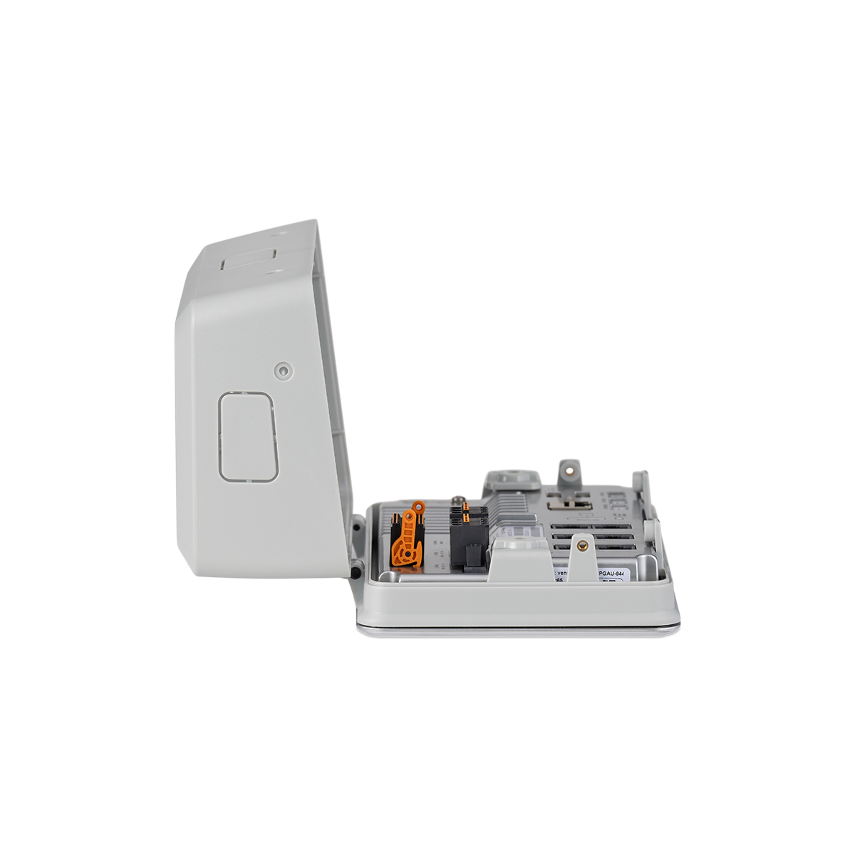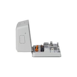 The enclosure is easily accessible: it opens from the top with two screws and folds forward without being removed from the wall, allowing straightforward connection of additional cables to the interfaces of the Ekrano GX from the sides, top, bottom, or back.